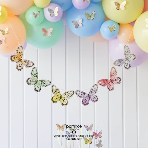 Pastel Happy Birthday yazılı doğum günü bayrak afişi 9,8 cm* 13 cm ölçüsündedir. Pastel renklere gold yaldız kullanılmıştır. Doğum günü organizasyonlarında süsleyici olarak kullanılabilir. Paket içinde 3 metre ip ile gönderilir. En son harften başlayacak şekilde ipe dizilir. İpin arkada kalması için ön delikten takılmalı; arka delikten çıkarılmalıdır. Sıralamada kolaylık sağlaması için ambalajın üzerindeki görseli referans alabilirsiniz. Doğum günü afişini hazırladıktan sonra ipin uçlarından bant yardımı ile duvar, masa ya da perde gibi zeminlere sabitleyebilirsiniz.