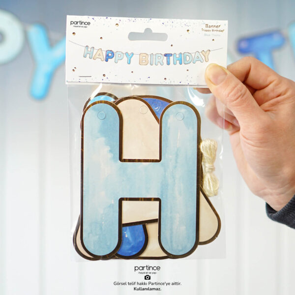 Pastel Happy Birthday yazılı doğum günü bayrak afişi 9,8 cm* 13 cm ölçüsündedir. Pastel renklere gold yaldız kullanılmıştır. Doğum günü organizasyonlarında süsleyici olarak kullanılabilir. Paket içinde 3 metre ip ile gönderilir. En son harften başlayacak şekilde ipe dizilir. İpin arkada kalması için ön delikten takılmalı; arka delikten çıkarılmalıdır. Sıralamada kolaylık sağlaması için ambalajın üzerindeki görseli referans alabilirsiniz. Doğum günü afişini hazırladıktan sonra ipin uçlarından bant yardımı ile duvar, masa ya da perde gibi zeminlere sabitleyebilirsiniz.