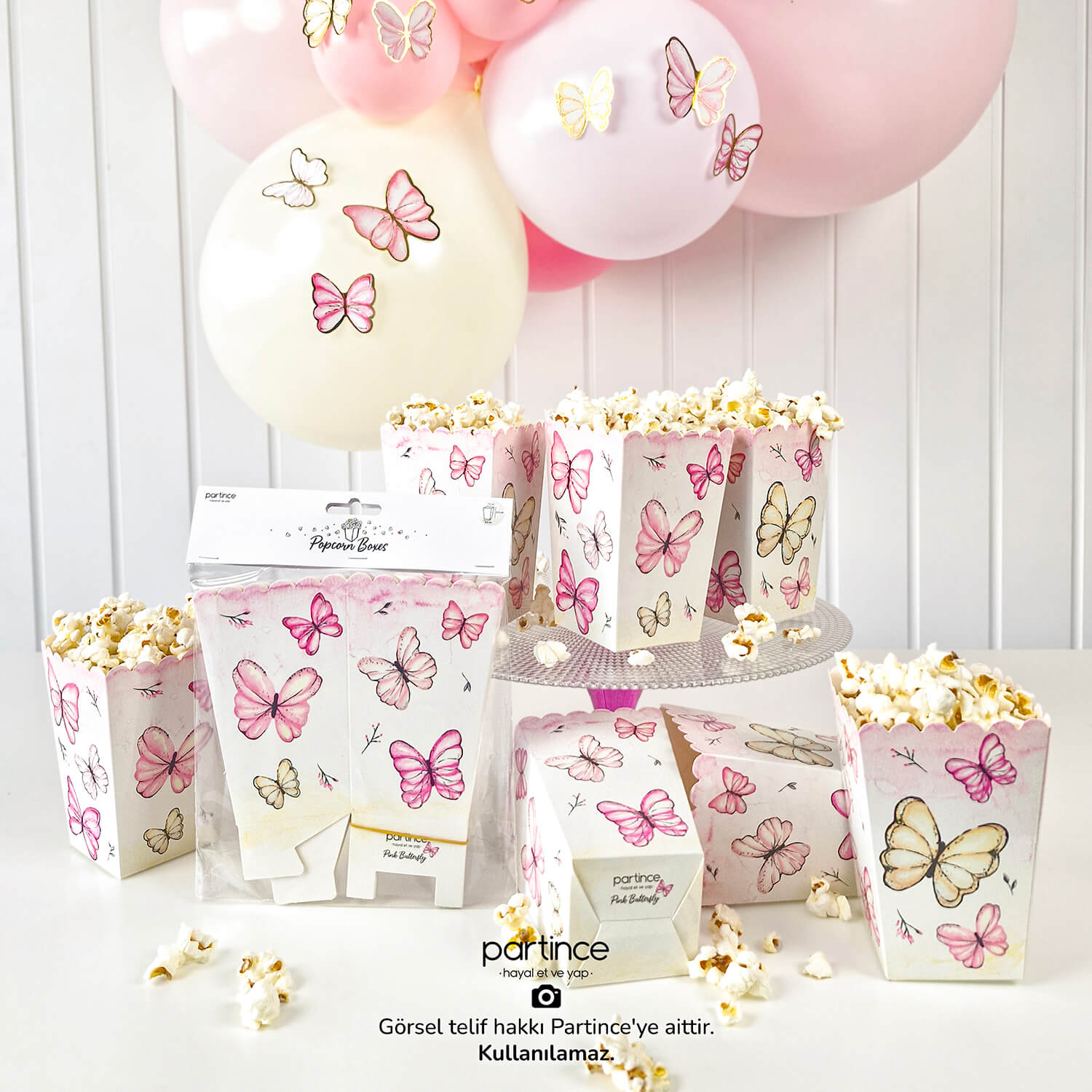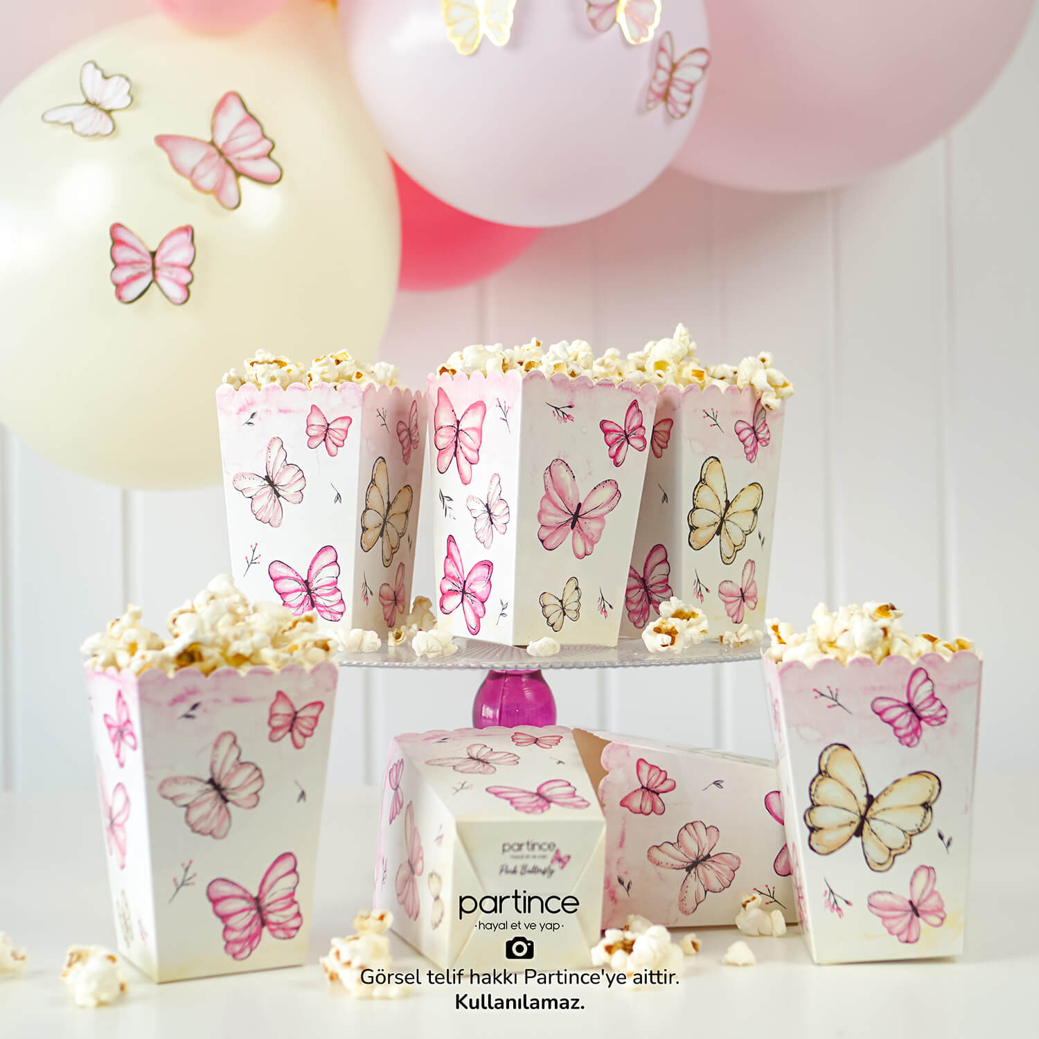 Pembe Kelebek Tema Popcorn Mısır Kutusu 8’li
